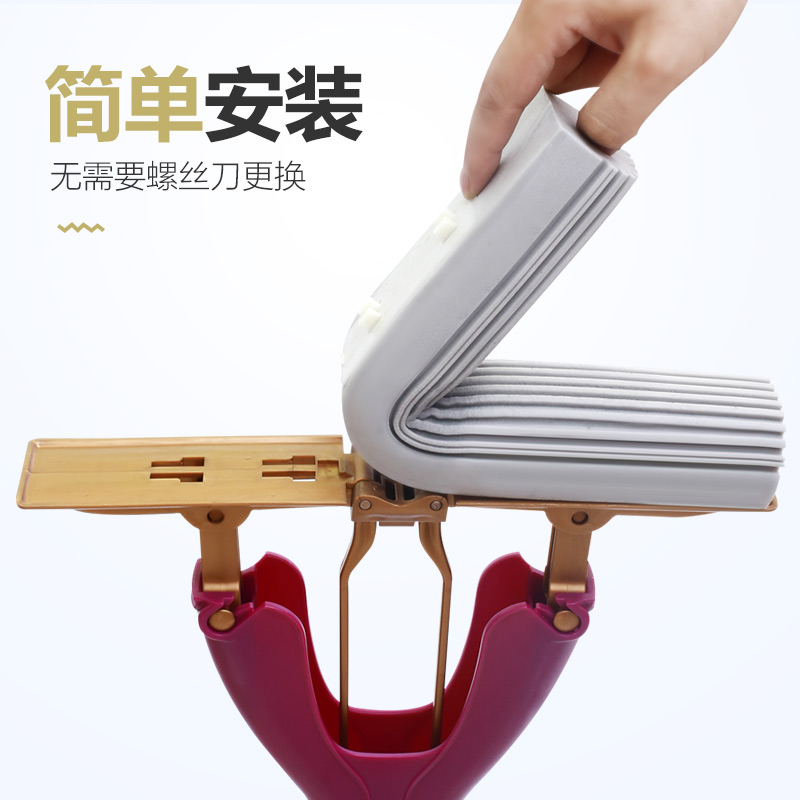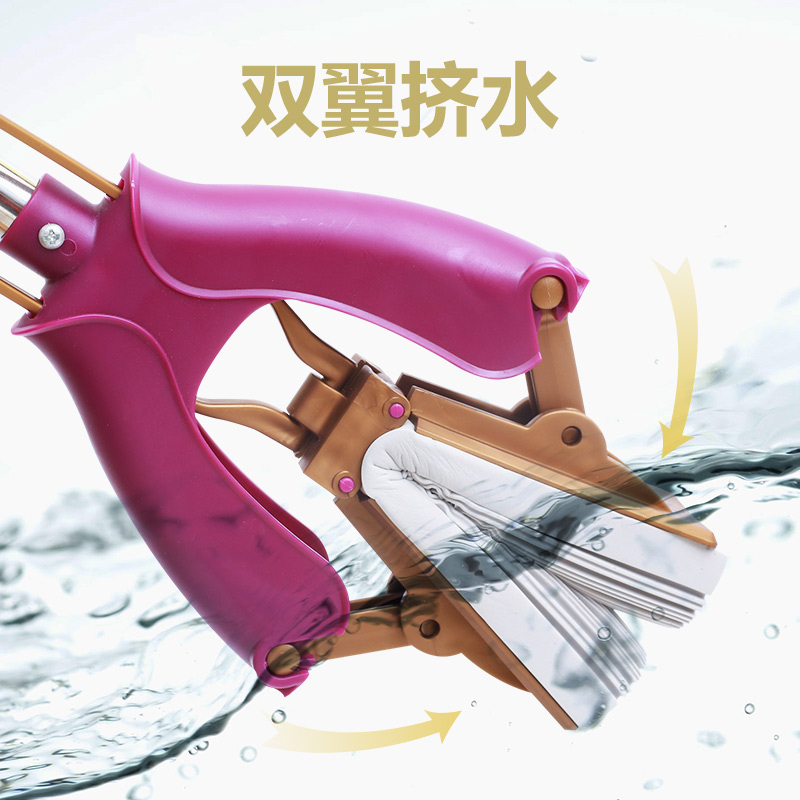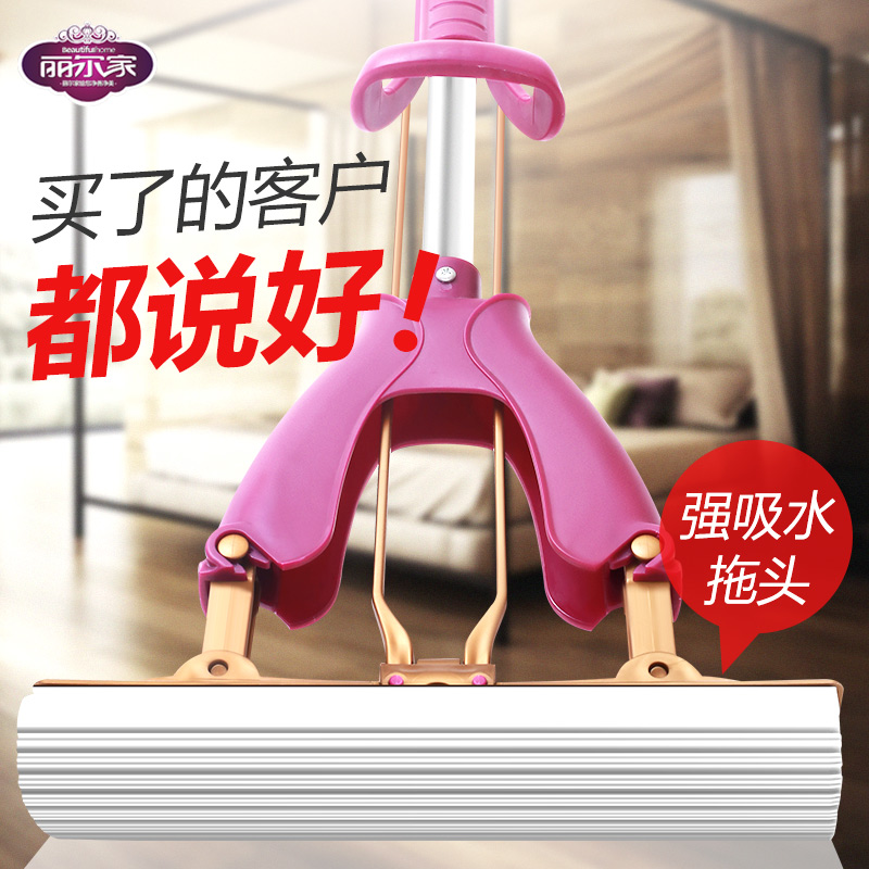 Lierjia rubber cotton mop Folding type water-squeezing mop absorbent hand-washing household stainless steel sponge mop