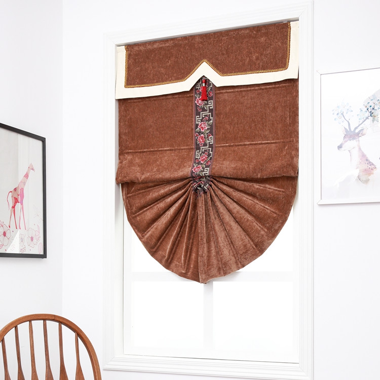 Chinese style modern style Roman curtain sector lifting curtain living room Bedroom Book room Custom Curtains Cashmere Chenille