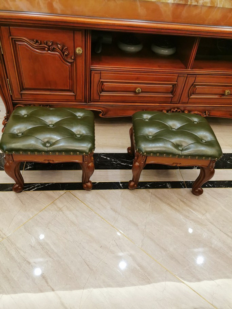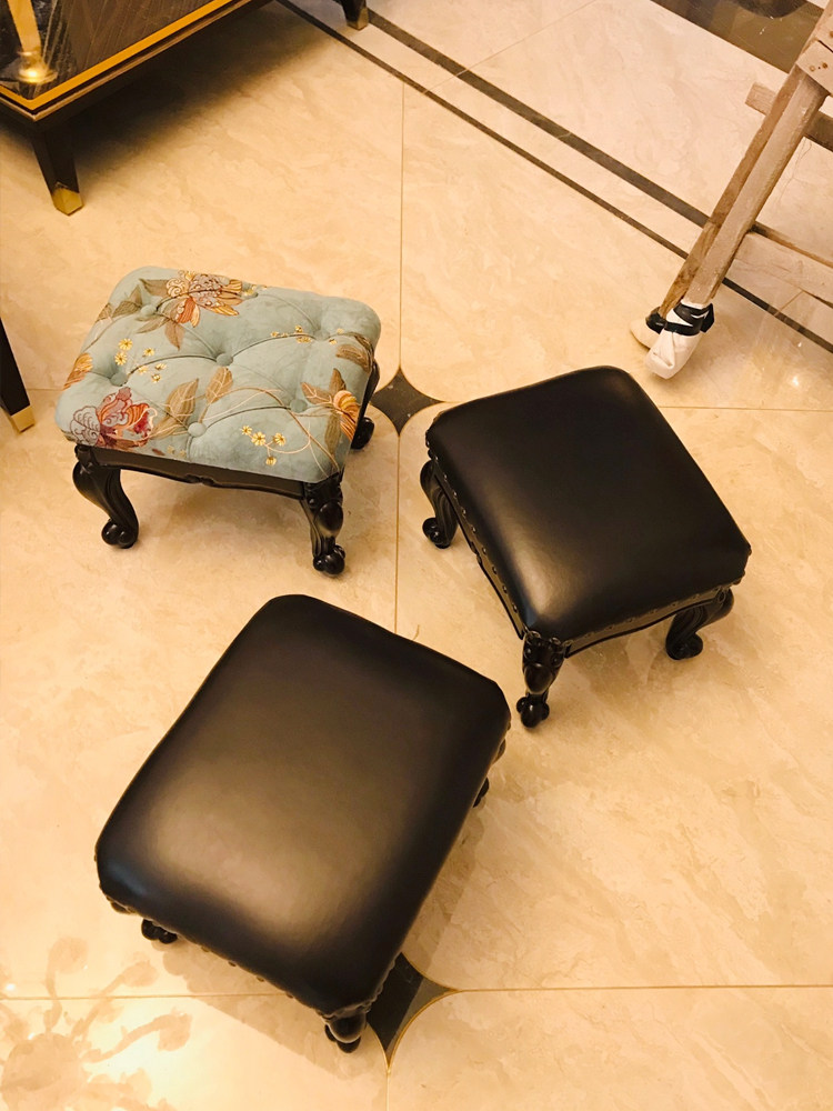 American solid wood low stool retro coffee table stool with copper nails living room square stool European style home leather children's shoe changing stool