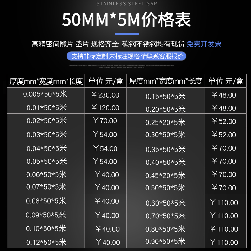 Maeda silicon steel sheet Precision gap sheet 50mm wide H S West Germany stainless steel mold steel adjustment tin steel sheet customization