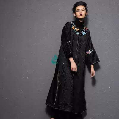 Cloud decoration totem original women's windbreaker ethnic style hand-embroidered butterfly lace long-sleeved coat outer cloak women's top black