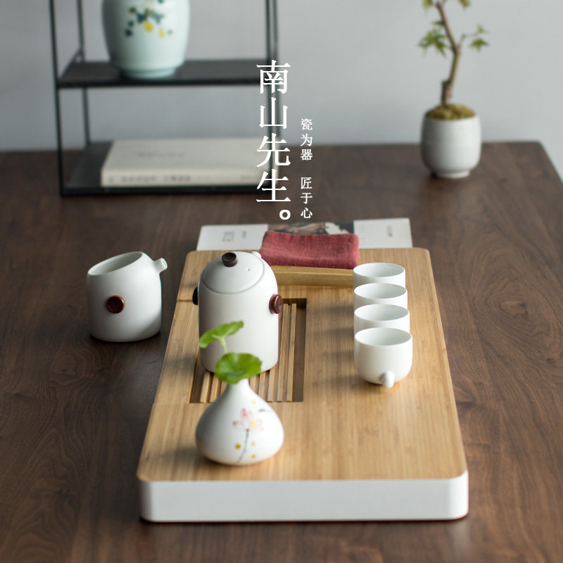 Mr Nanshan ten-string bamboo tea tray Long-shaped large tea tray Bamboo simple Kung Fu tea household water guide tea tray