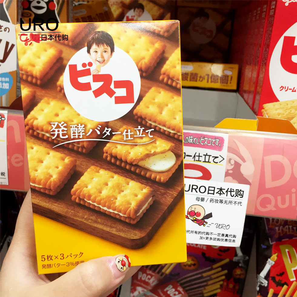 Spot Japanese native solid fruit glico high calcium lactic acid bacteria cream sandwich biscuits contain 0.1 billion lactic acid bacteria 1 year old