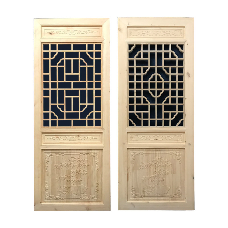 Dongyang wood carving new Chinese style antique solid wood double-layer doors and windows double-sided carving porch partition screen background wall