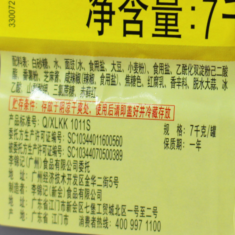 South China's Guangdong Province Li Jinkee Jinzhen Seafood Sauce 7KG Catering Cured Onion Grabbing Cake Hot Pot Dipping Sauce Sauce
