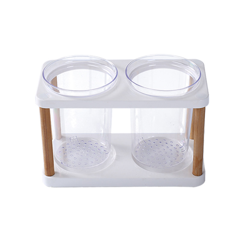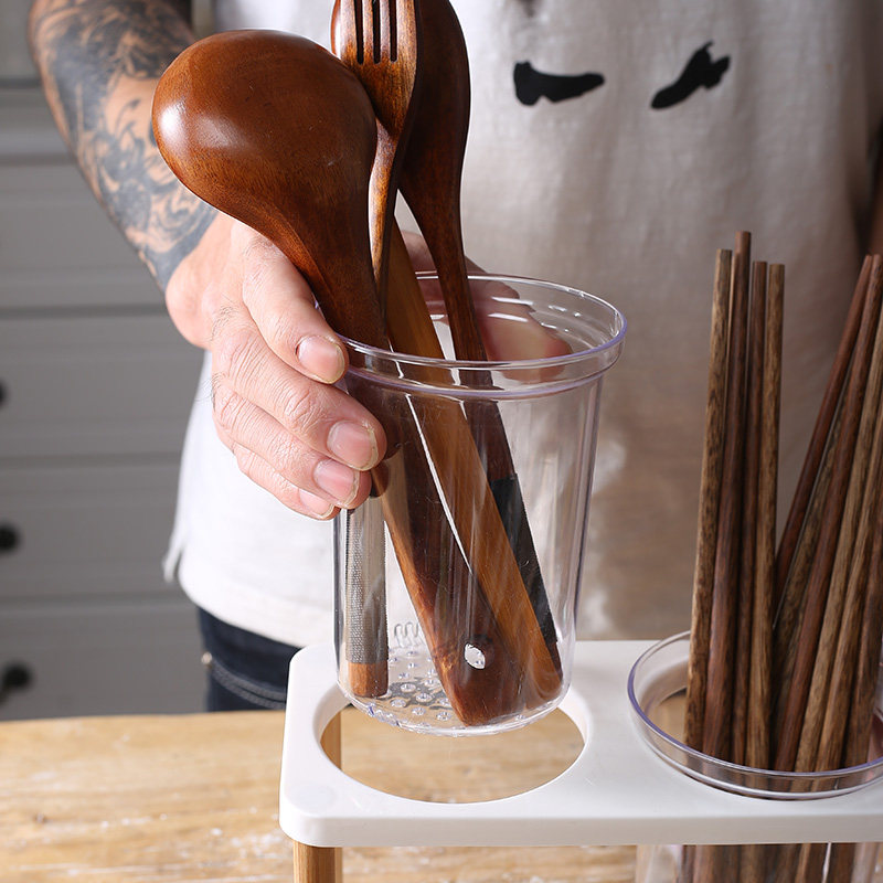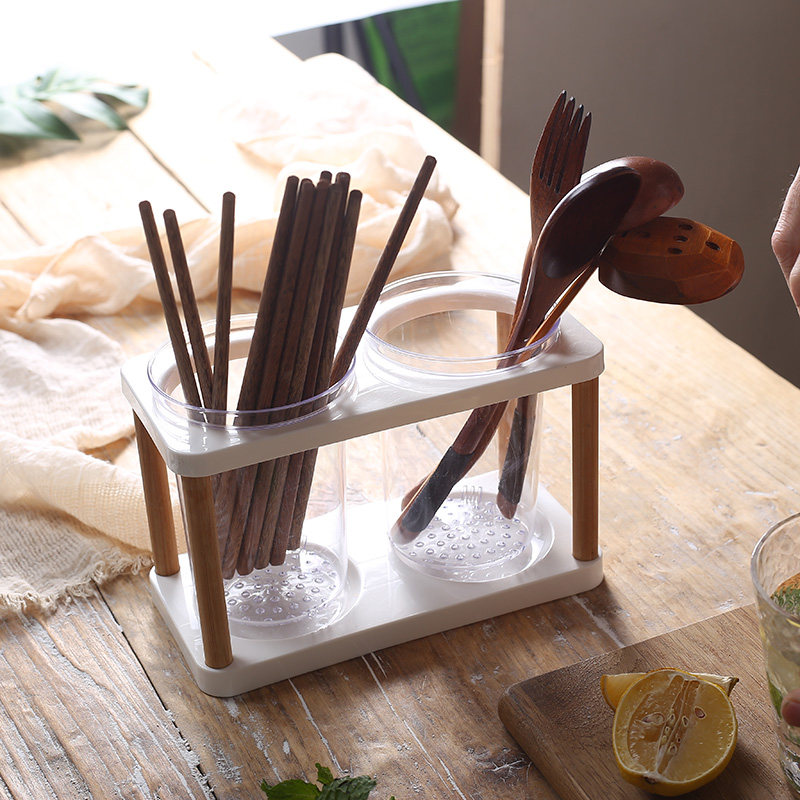 Quick-drying Japanese-style bamboo and wood plastic chopsticks barrel household double-barrel rack drain chopsticks cage kitchen tableware spoon storage