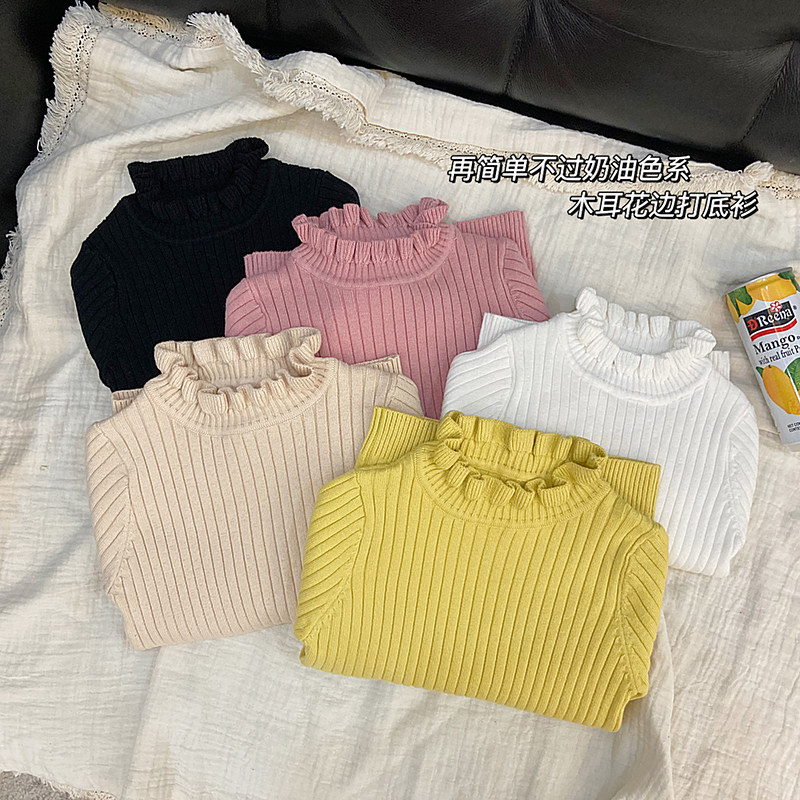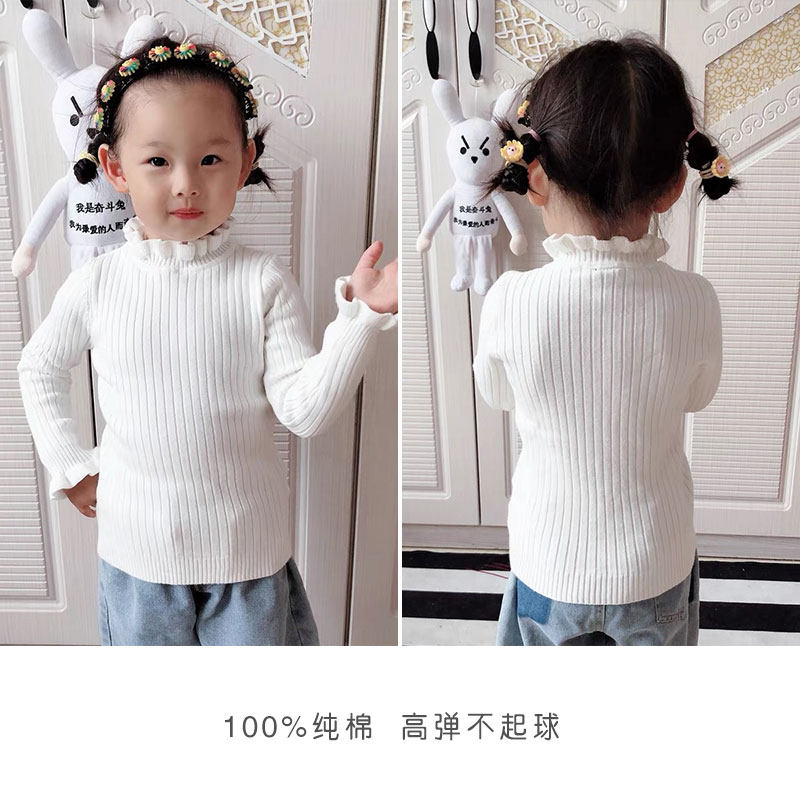 Baby white blouse cotton-ear neck children plus pot-lace knitted sweater girl autumn winter