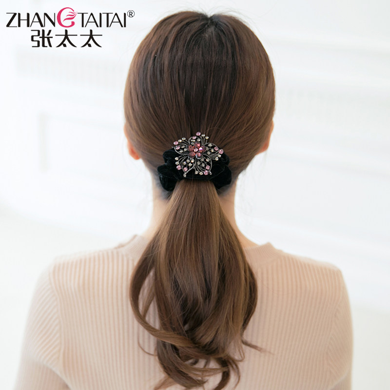Water Drill Disc Hair Hair Hair Clip Hair Clip Hair Accessories Retro Elegant Hair Ring Hair Ring Zama Tail Head Decorated Leather Ring Rubber Band Rubber Band