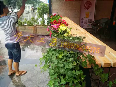 American retro outdoor bar table solid wood simple high foot table and chair combination Leisure bar flower box