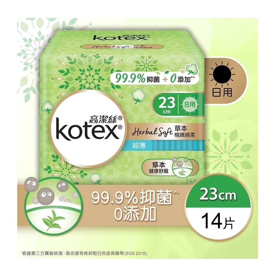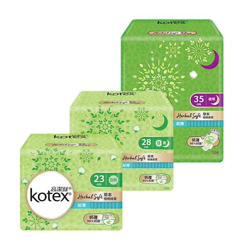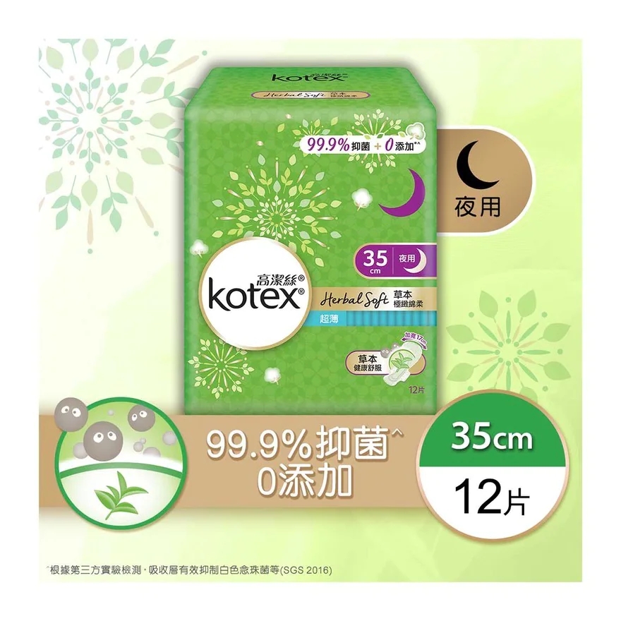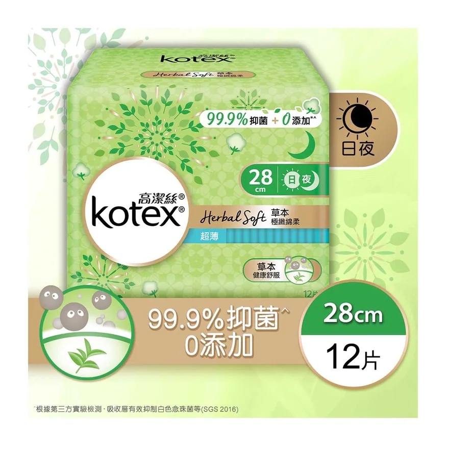 Hong Kong version of Kotex reliable sanitary napkin 99 9% antibacterial herbal cotton soft ultra-thin day and night use 23-28-35cm