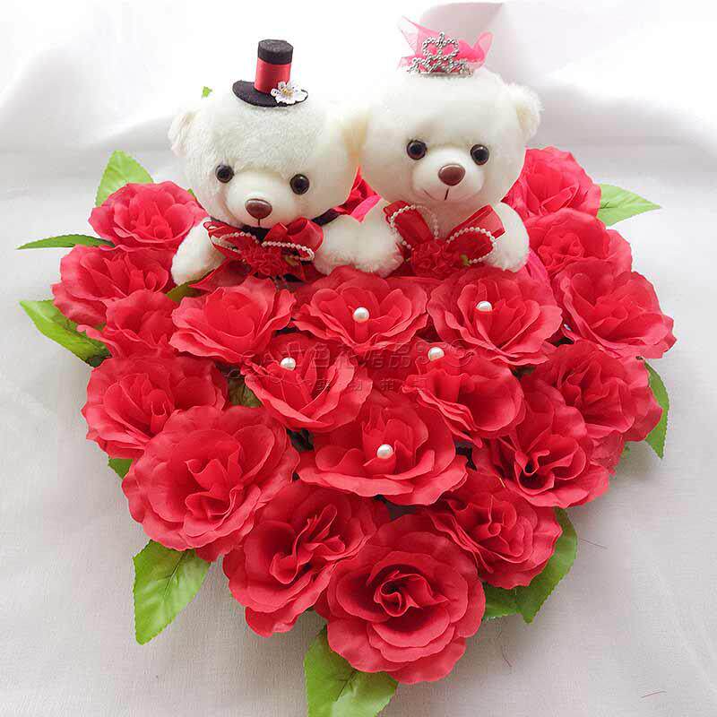 Wedding Wedding limousine doll A pair of wedding limousine decoration supplies Bear couple Bear team car front flower sub car decoration doll