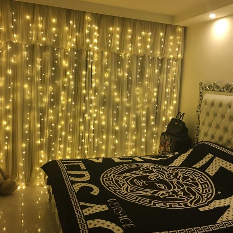 Colorful lights Flash lights String lights starry lights Anchor room Bedroom household net red decorative curtains Waterfall icicle lights
