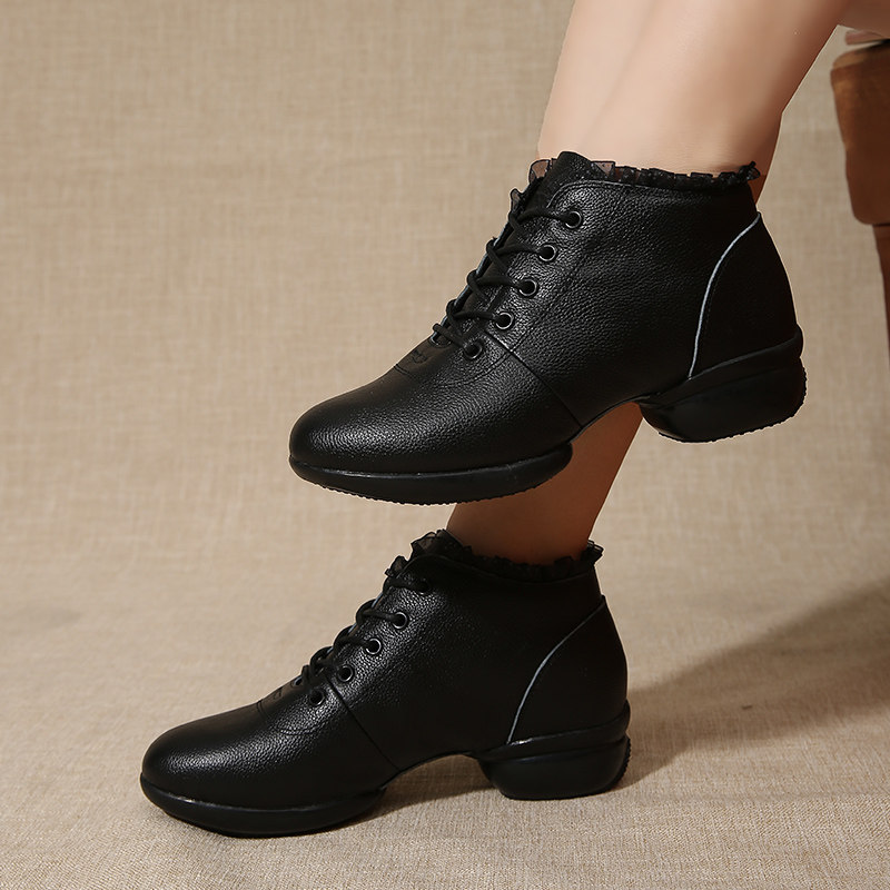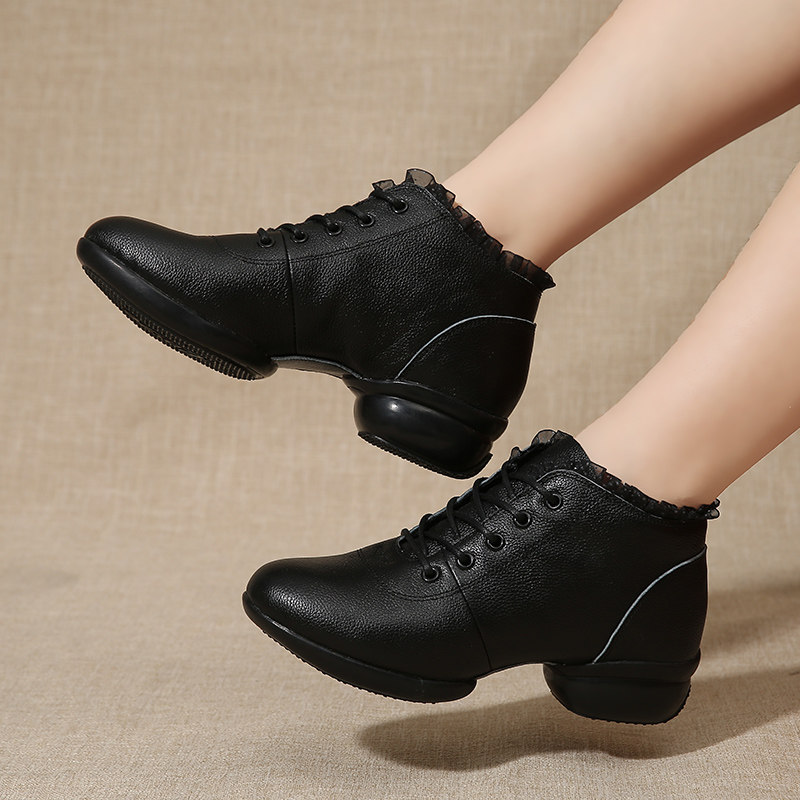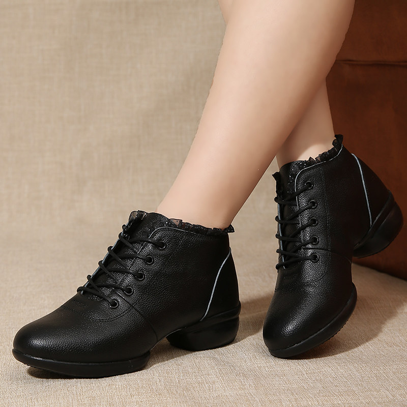 Niu domineering leather dance shoes women's winter new sailor dance boots adult dancing soft bottom heel square dance shoes