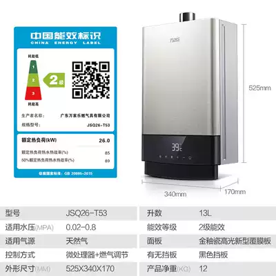 Macro Wanjiale T53 intelligent frequency conversion constant temperature 13-liter strong exhaust gas electric gas water heater