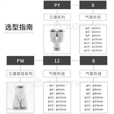 White pneumatic Y-shaped three-way PY8 plastic trachea quick plug connector PW4 6 10 12 16mm reducer 14