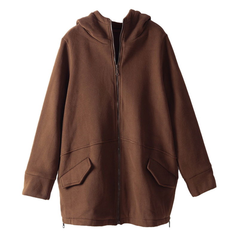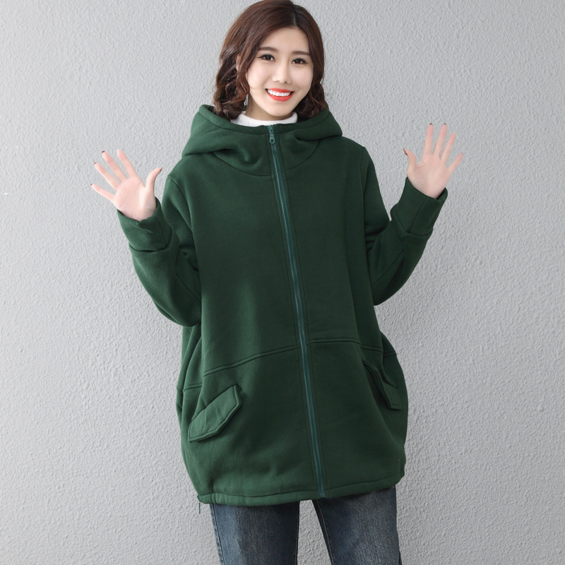 2020 Winter new Queen's Casual Pure Color Loose slim hymn Sports shirt pure cotton medium long version thickened jacket