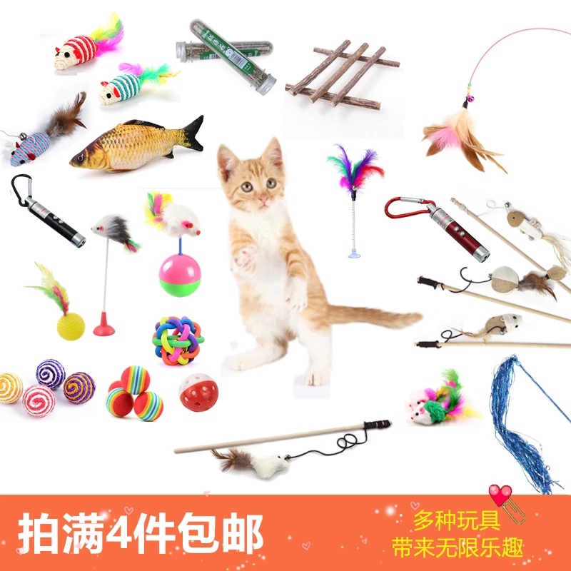 Kitty Toy Cat Toy Rat Teasing Cat With Cat Stick Turkey Wool Colored Feather Bell Mint Four Pieces