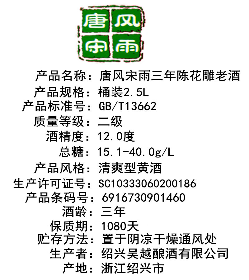 Shaoxing wine and songfeng song rain 3 years Chen Hua carving drum drum 5 pounds housewife kitchen burn dish home flavor