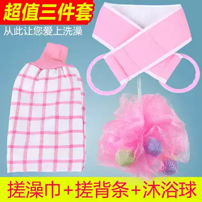 Three-piece set of back rub pink bath gloves Pink bath ball color random] Three-piece set of back rub blue bath gloves Blue bath ball color random] Three packs of bath gloves 2 powder