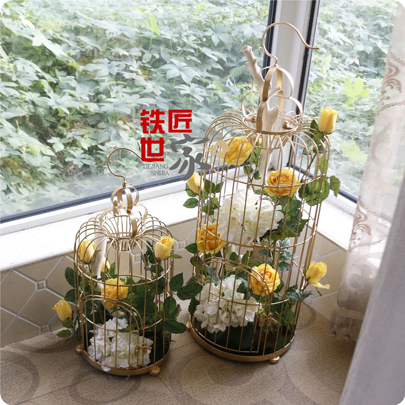 Decorative Bird Cage Iron Art Bird Cage Decoration Bird Cage Swing Piece White Bird Cage Floral Shop Window Bird Cage Props