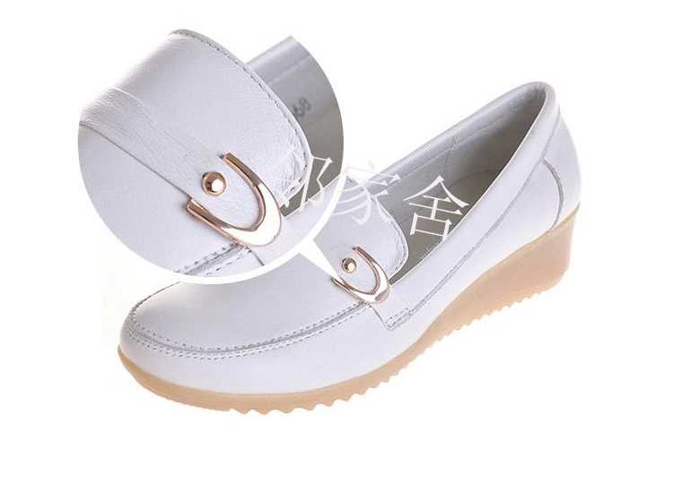 Spring and autumn winter white nurse shoes leather wedge heel non-slip beef tendon bottom comfortable casual white shoes mother work shoes