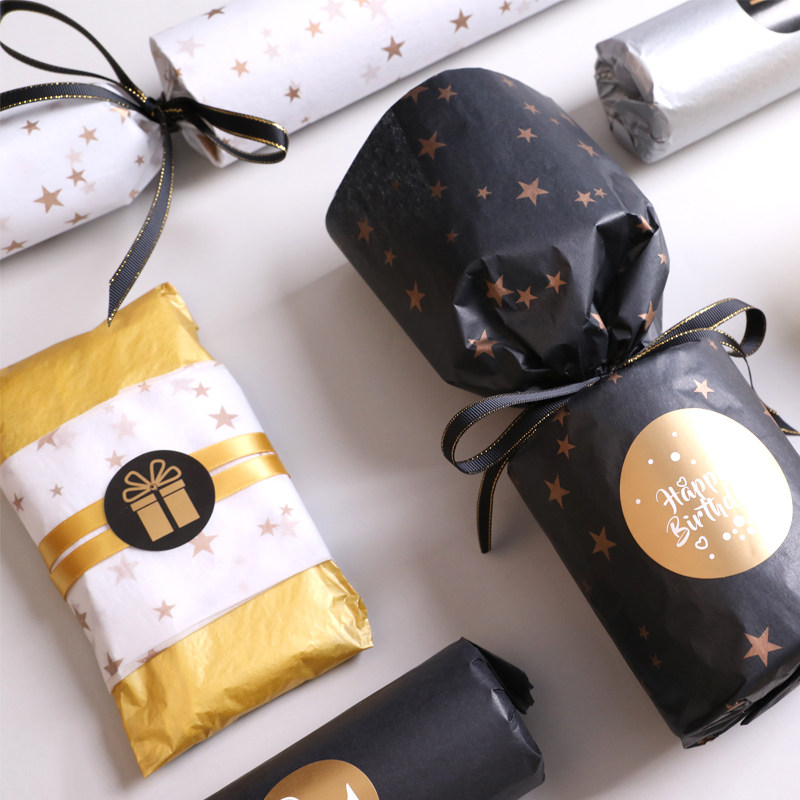 Thin Sydney paper double-sided gold 5 sheets thin Sydney paper double-sided silver 5 sheets thin Sydney paper double-sided bright black 5 sheets thin Sydney paper black hot stamping five-pointed star 5 sheets thin Sydney paper white background hot stamping pentagram 5 sheets 1cm wide thread gold edge ribbon 4cm original universal sticker 4 sheets 32 stickers