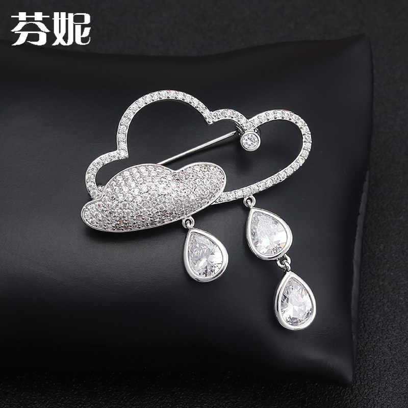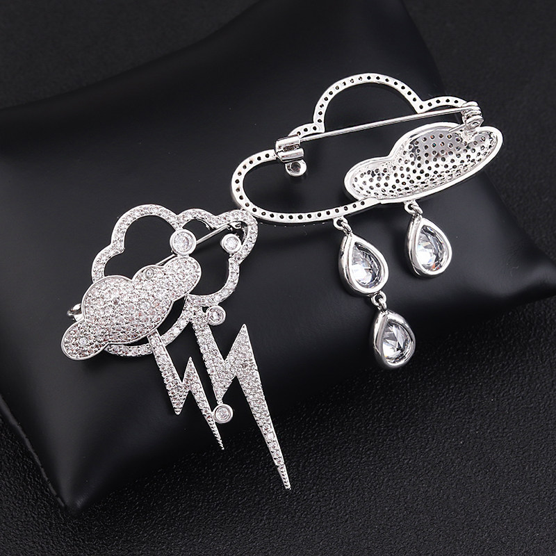 Fennie Weather Series Cloud Water Drop Lightning Brooch Minimalist Atmospheric Crystal Breast floral collar Needle pin accessories