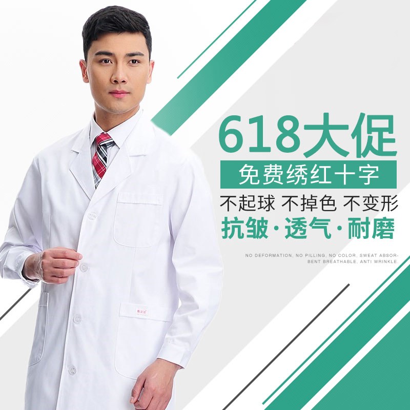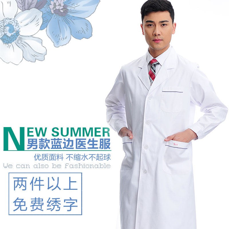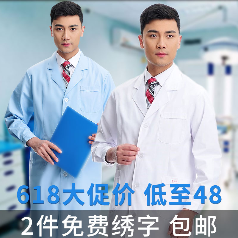Semi-permanent white coat summer long sleeve male doctor's clothing experimental health school pharmacy beauty salon work Korean nurse's clothing