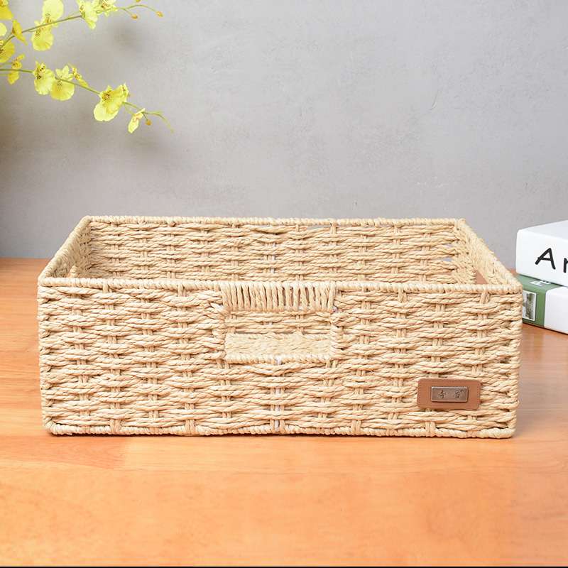 Straw fabric storage basket desktop snack basket cosmetics toy finishing basket desktop storage box file basket rattan weaving