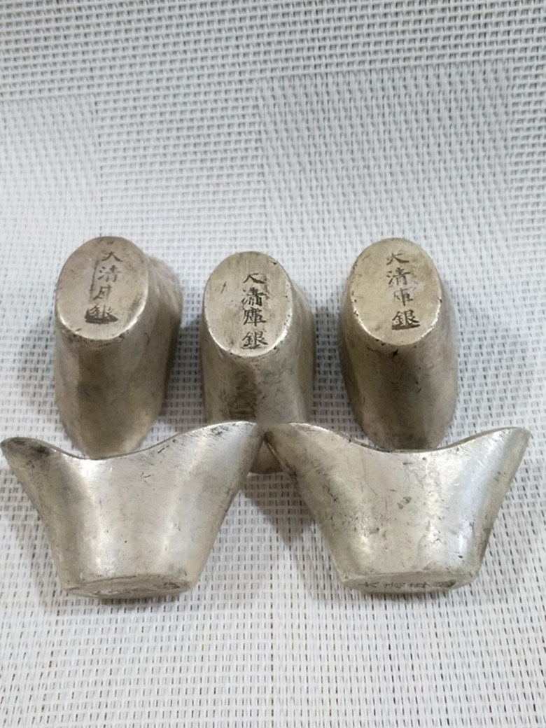 Ancient coins Qing dynasty silver ingots Yuanbao ancient coins with coins large Qing bank silver Ergones two-two-thread silver silver ingots silver solid copper