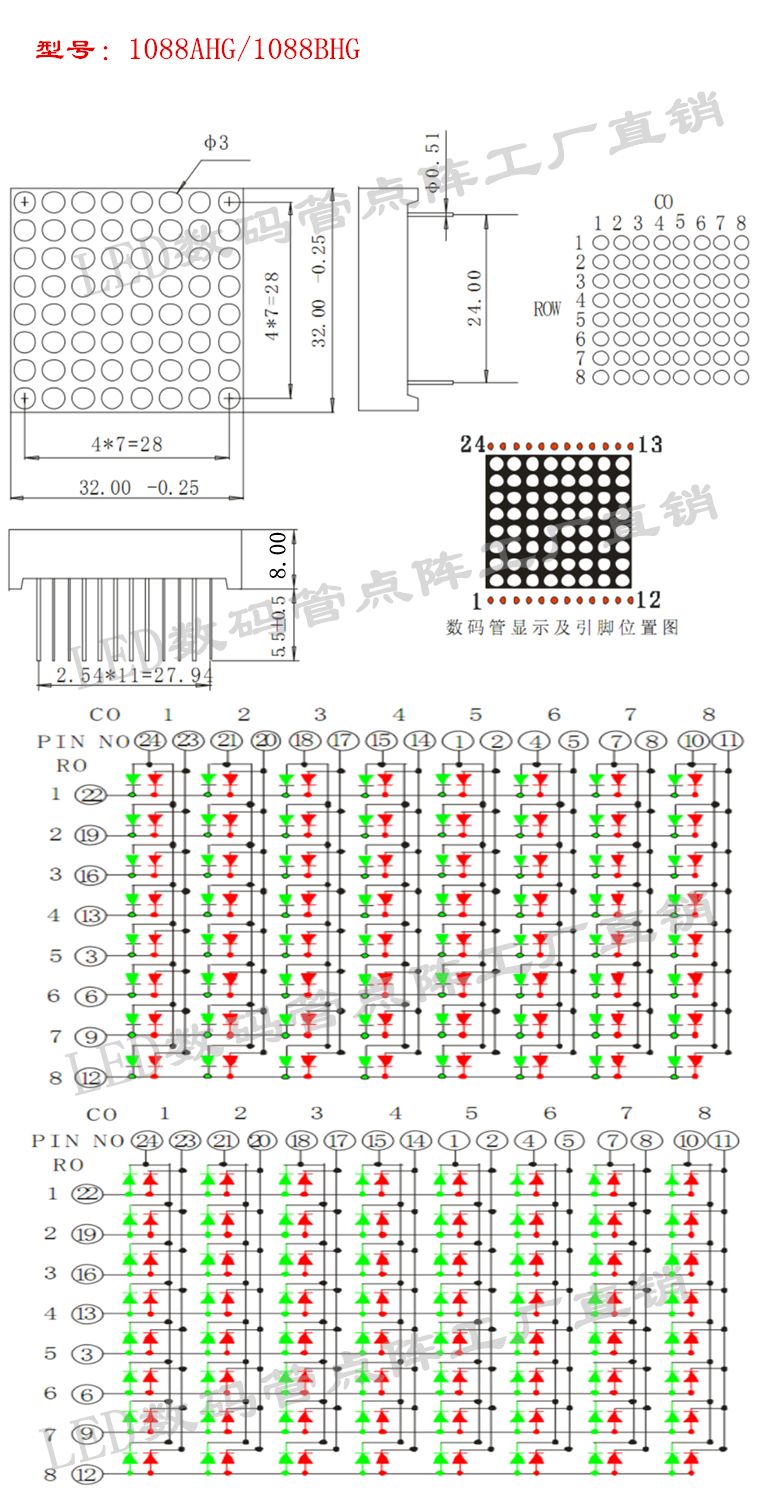 3mm8*8 two-color laser(red-yellow-green) 32*32mm red-green two-color laser 1088AHG 1088BHG