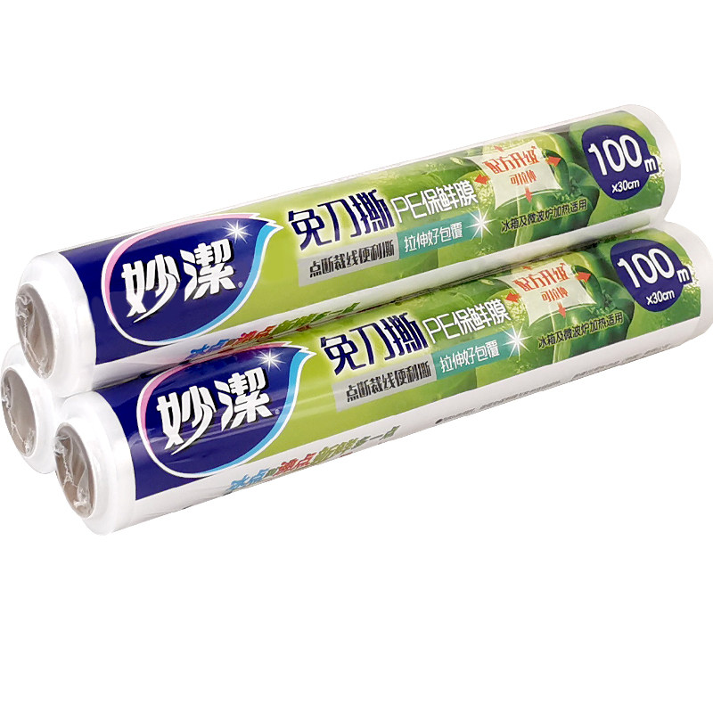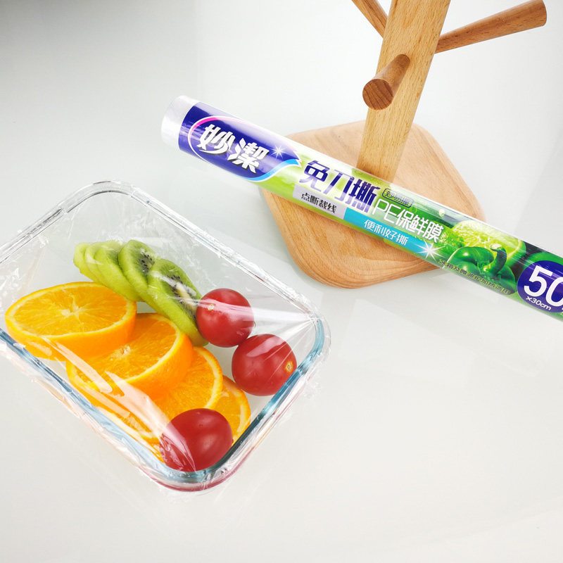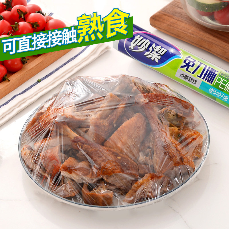 Miaojie knife-free tear-off plastic wrap point-break type fresh-keeping refrigerator kitchen microwave oven suitable for hand-tearable food-grade PE film