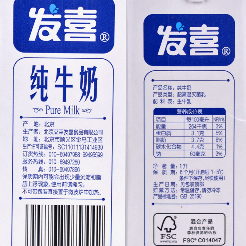 Beijing Faxi Pure Milk 1L12 Boxed Whole Case Coffee Breaking Milk Drink Western Food Special Full Fat Ship Flag Shop