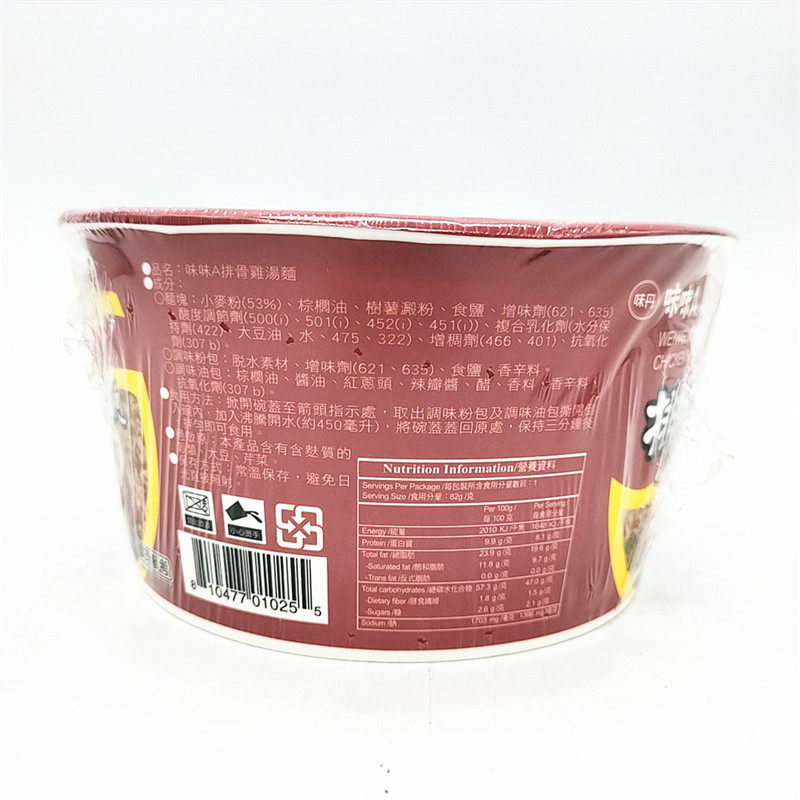Over 68 yuan Taiwan imported Weiwei A spare ribs chicken bowl with instant noodles 82g