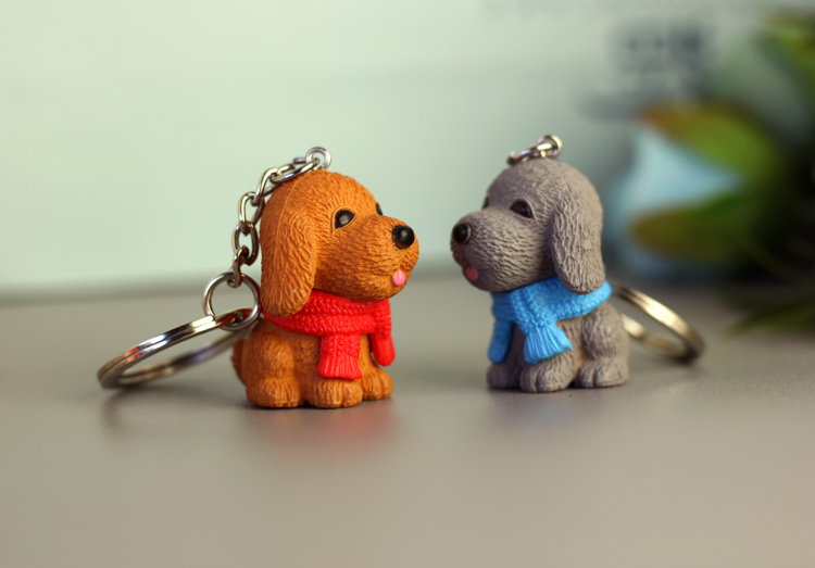 Couples doll scarf puppy keychain pendant wedding gift simulation dog cute bag hanging key chain