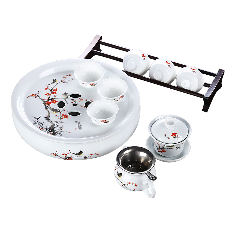 Tea set set household simple ceramic kung fu tea cup tea pot tea sea tea tray tea ceremony office whole set of tea set