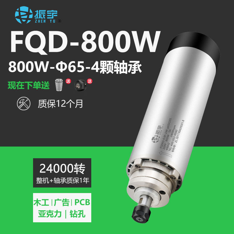 Zhenyu engraving machine spindle motor 800w1 2kw air-cooled er11 four-bearing 7 series P4 level high-speed motor 65mm