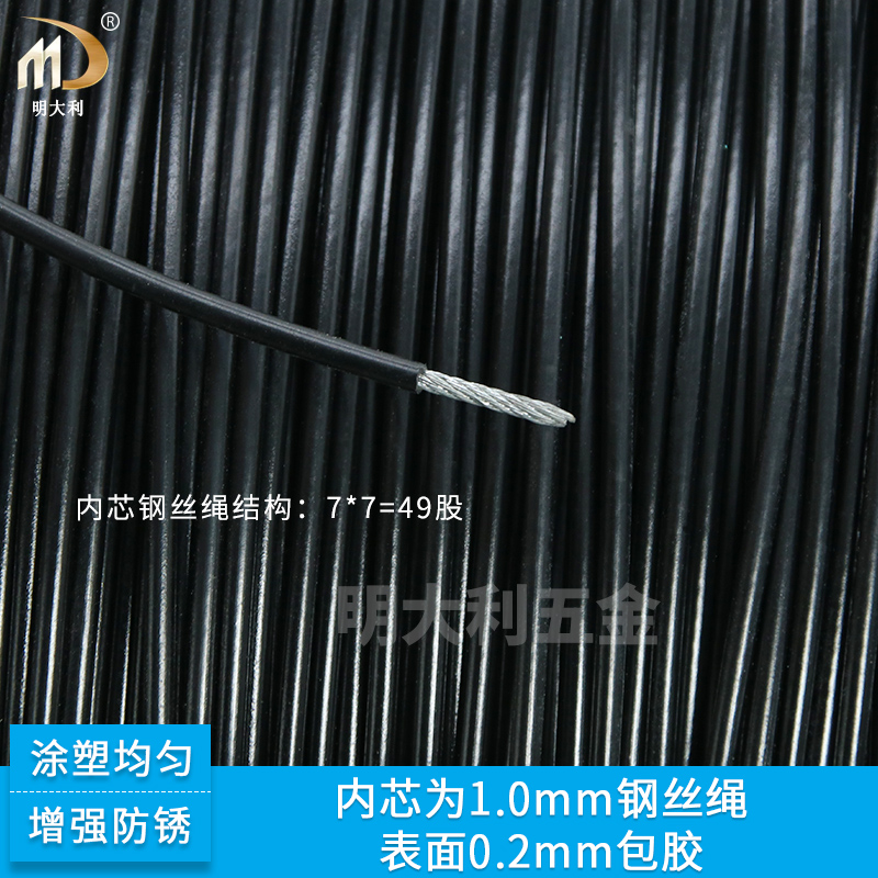 1 2mm wire rope bare rope (10 m price) 1 2mm coated wire rope (10 m price) 1 2mm black rubber wire rope (10 m price) 1 2mm aluminum sleeve