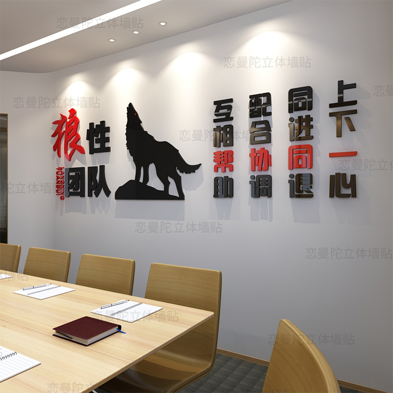 Corporate Office Enterprise Cultural Wall 3d Stereocrystal Acrylic Wall Patch Wolf team Inspirational Signs Wall Sticker-Taobao
