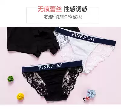 Japanese girl lace underwear women's cotton low-waist briefs women's translucent mesh couple cotton men's pants