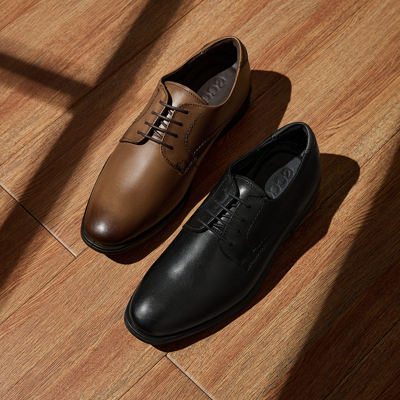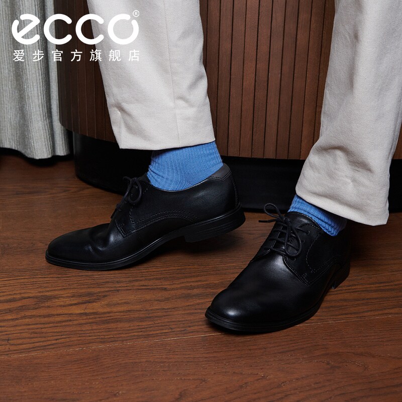 ECCO Aibu Business Shoes Men's British Dress Shoes Lace-Up Low Shoes Leather Derby Shoes Ink 621634