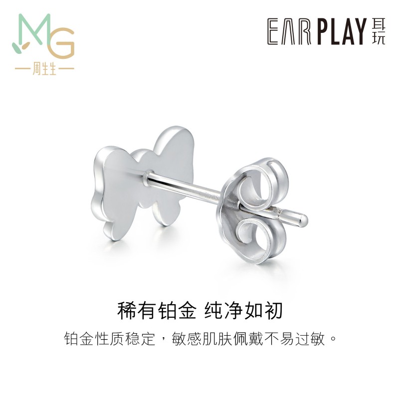 Chow Sang Sang Lets Play Princess Bow Stud Earrings Girls Platinum Earrings Single 89816E