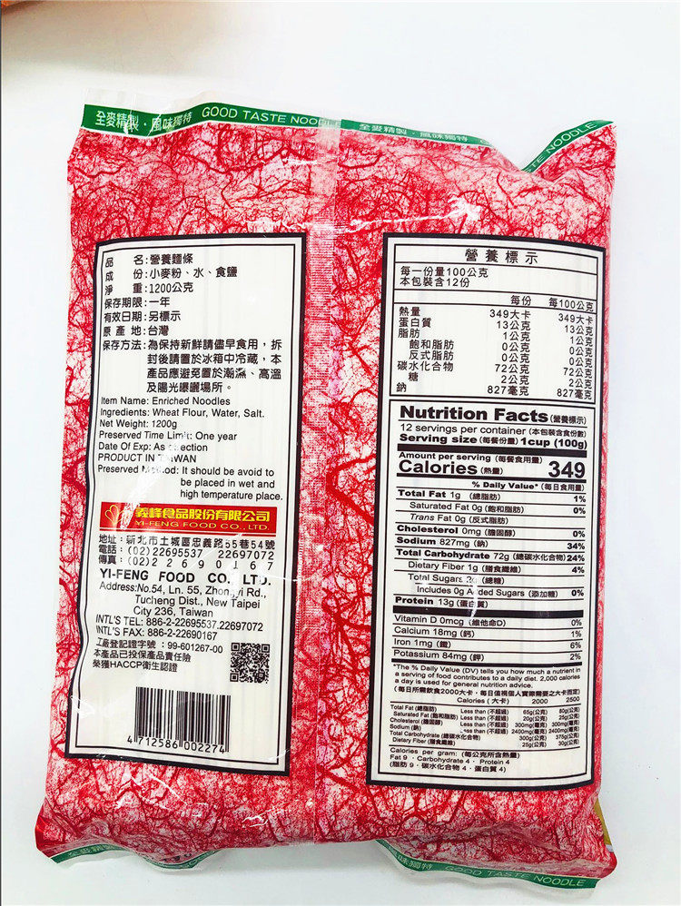 Yifeng Nutritious Noodles 1200G Yifeng Special Oil Noodles 1200G