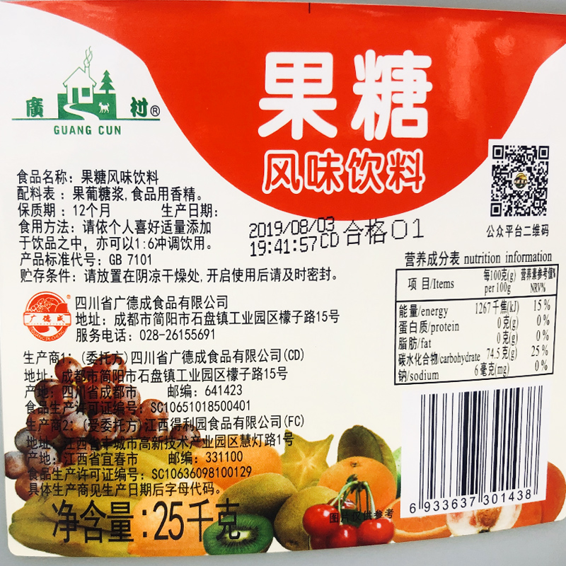 Guangcun Fructose 25kg Fructose Syrup Milk Tea Dessert Restaurant Gongcha Royal Tea Special Original Syrup