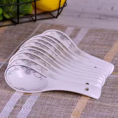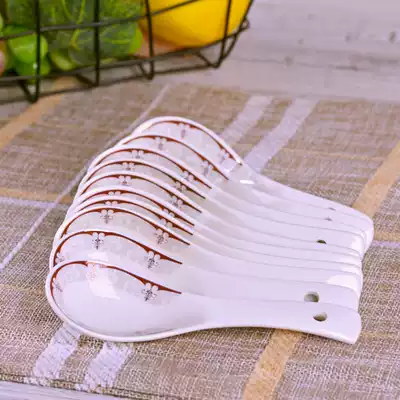 Jingdezhen ceramic household Chinese single long handle porridge small soup spoon eating spoon tableware set set soup spoon