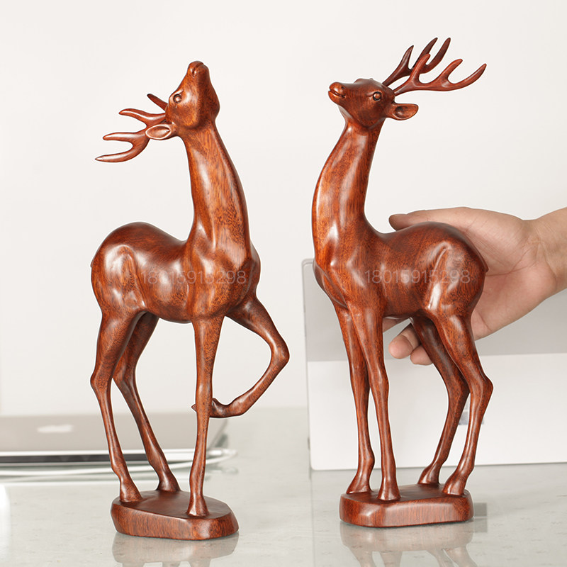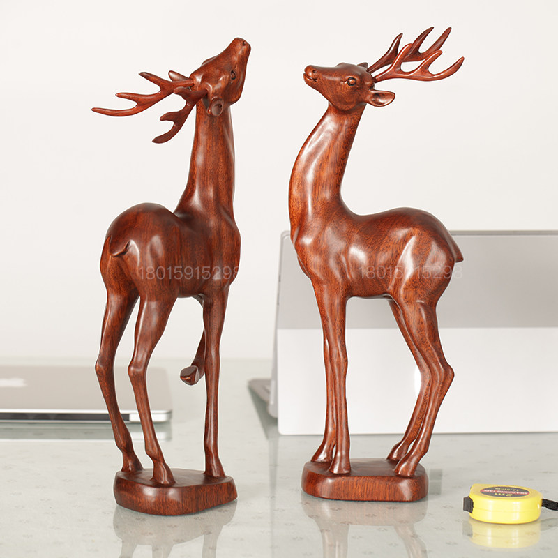 Flowers Pear Solid Wood Engraving Plum Blossom Deer Pendulum Pieces Sandalwood Root Engraving All The Way Home Living Room Decoration Red Wood Handicraft