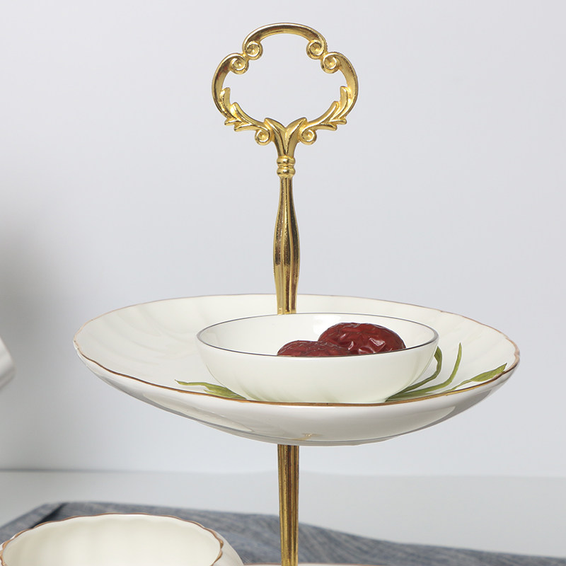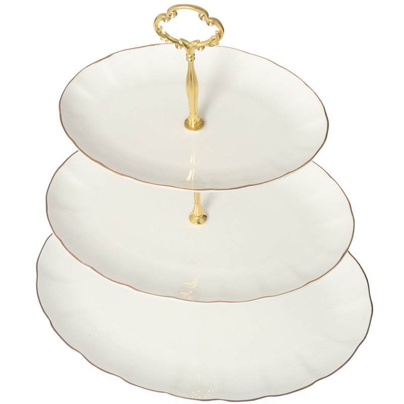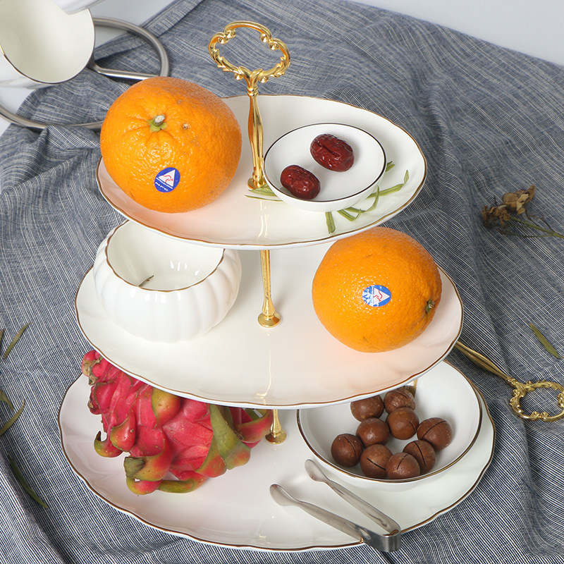European-style three-layer fruit plate bone china cake snack plate creative Phnom Penh oval dried fruit rack afternoon tea snack rack