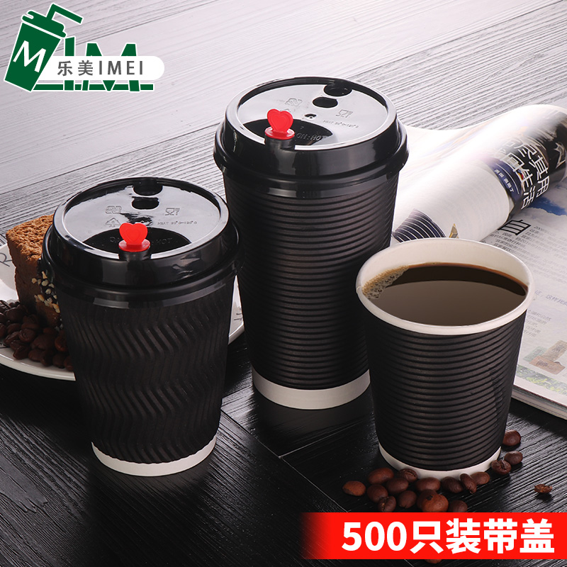 Thickened corrugated disposable milk tea paper cup with lid custom commercial hot drink soy milk delivery coffee cup ml500