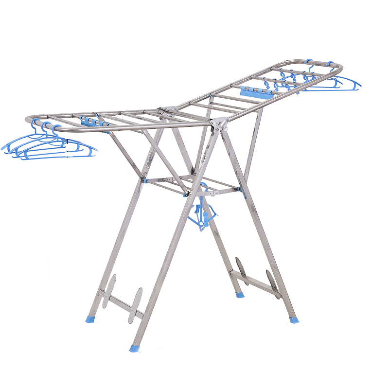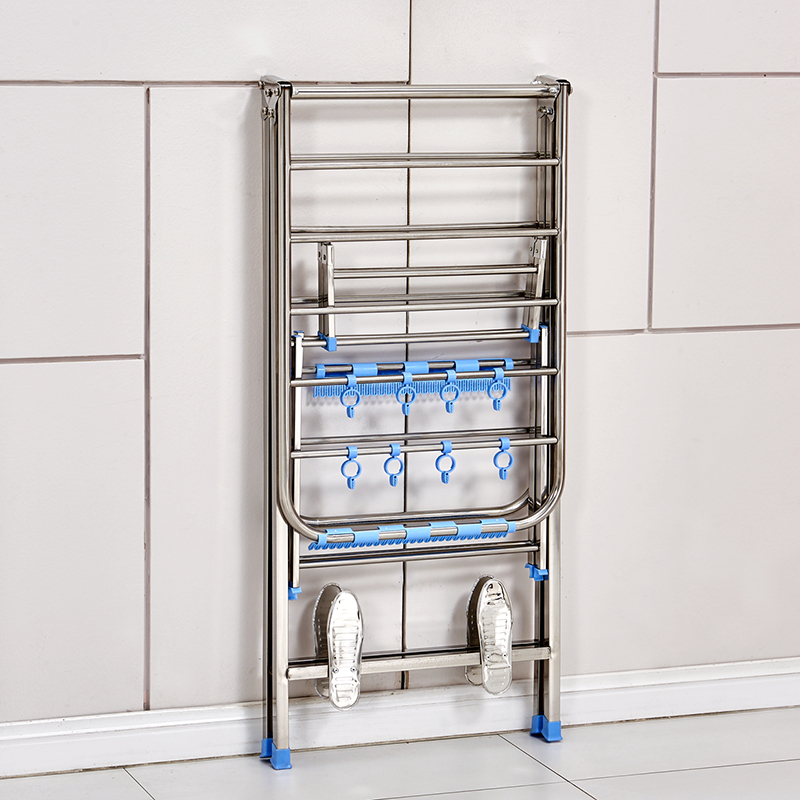 Stainless steel clothes rack Floor folding bedroom balcony clothes rack Household baby clothes rack drying quilt artifact