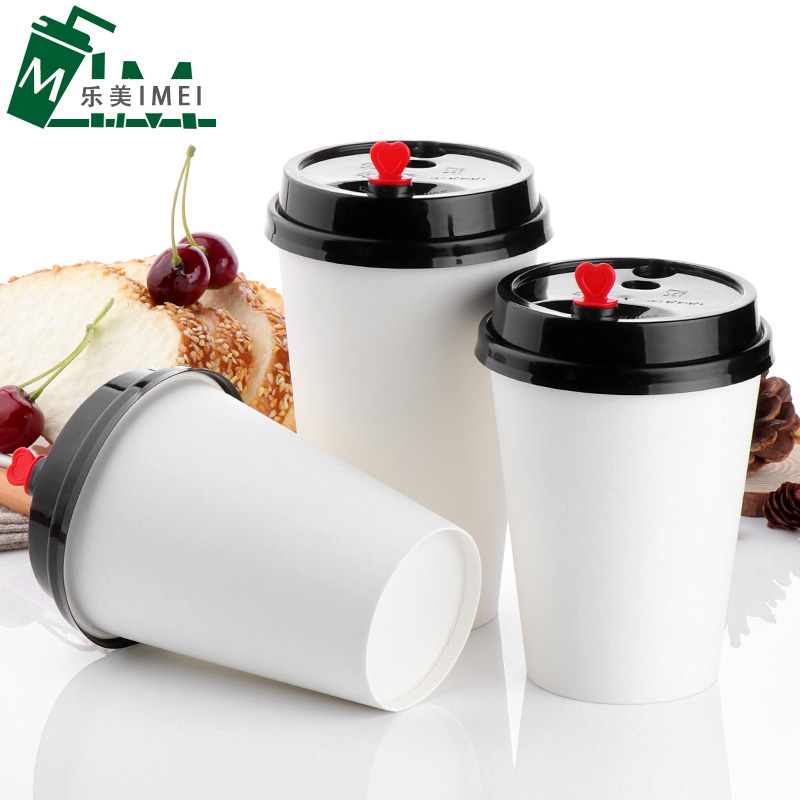 Thickened coffee paper cup with lid disposable milk tea hot drink paper cup custom commercial soy milk 500ml1000 packs